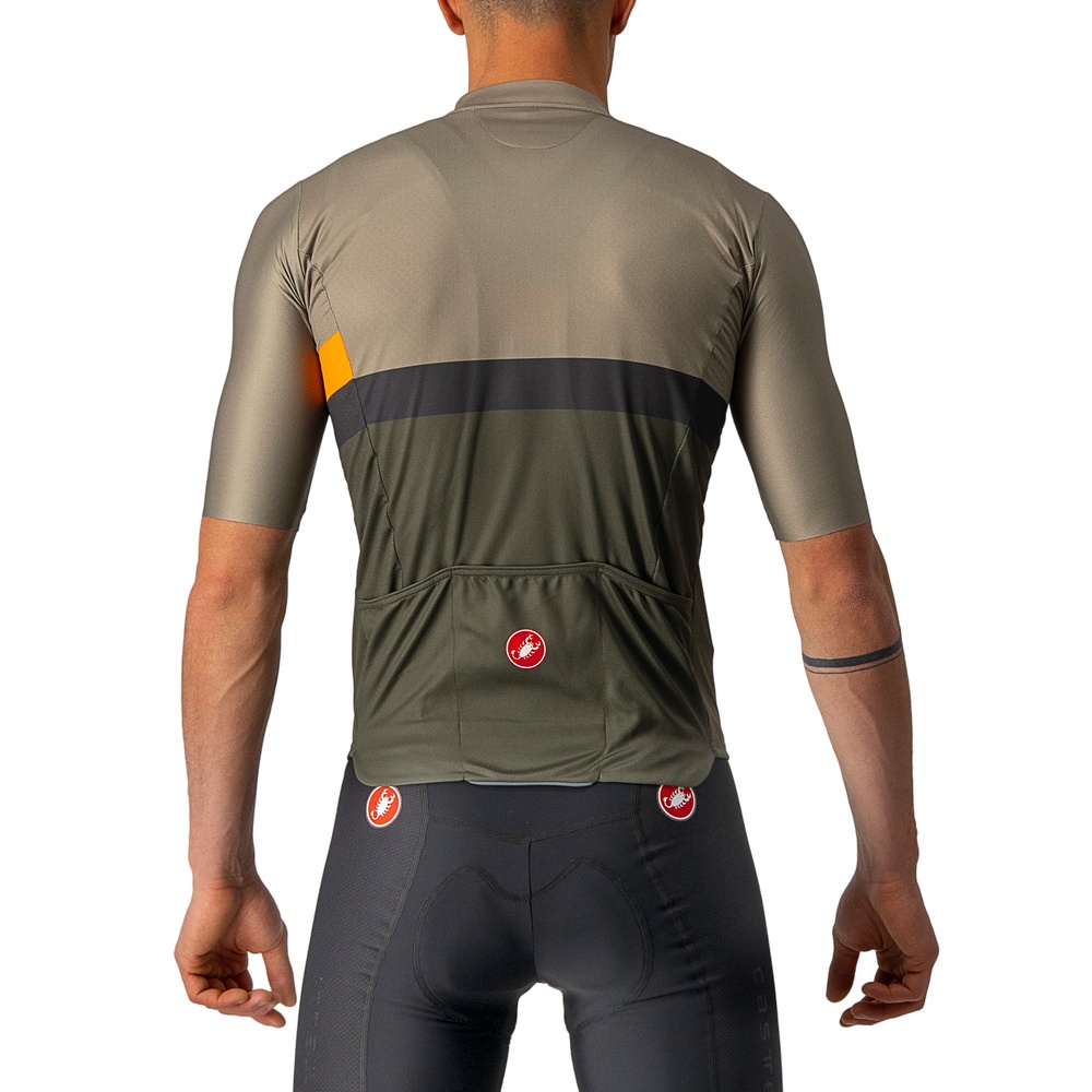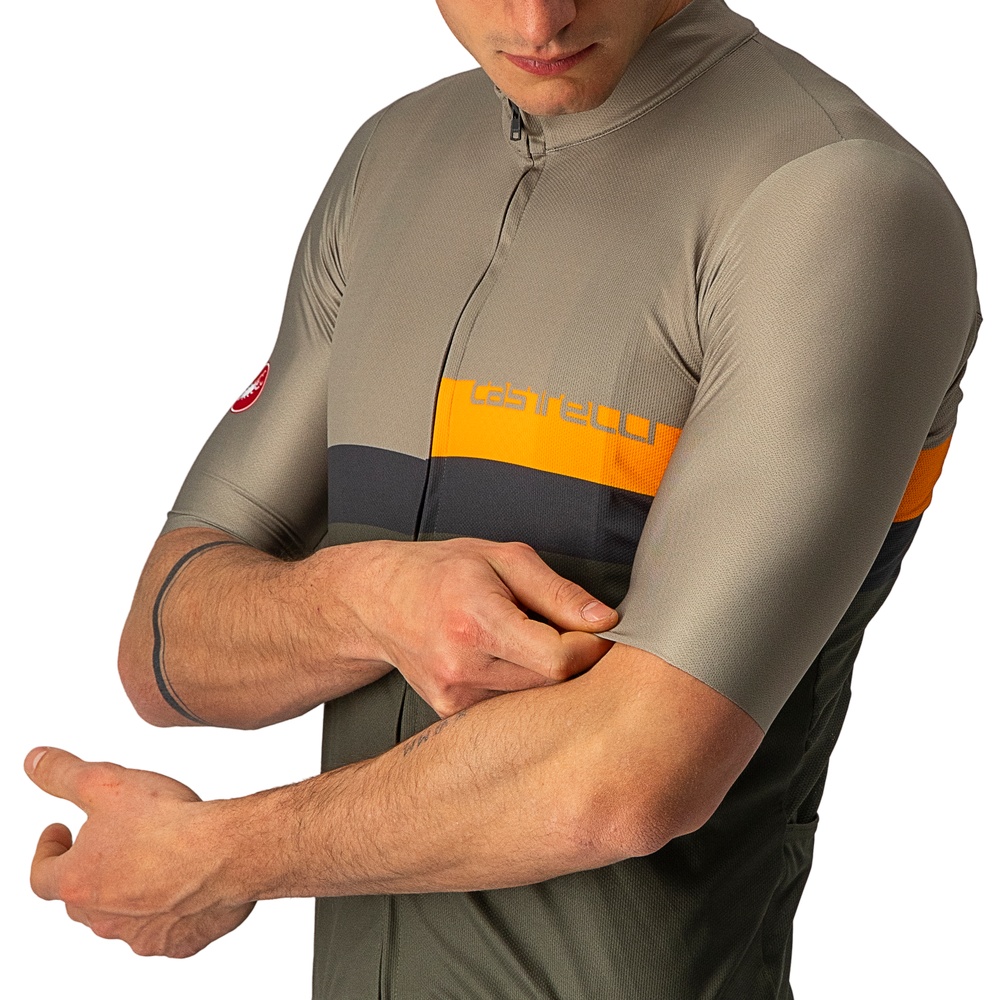 Classic design based on the Castelli Squadra Jersey construction that updates a traditional cut with technical details like a drop-pocket design and stretch raw-cut sleeves for great fit and comfort.