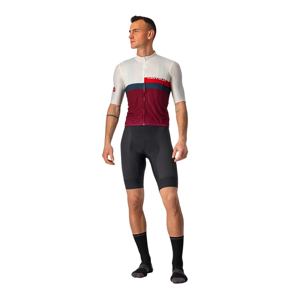 Classic design based on the Castelli Squadra Jersey construction that updates a traditional cut with technical details like a drop-pocket design and stretch raw-cut sleeves for great fit and comfort.