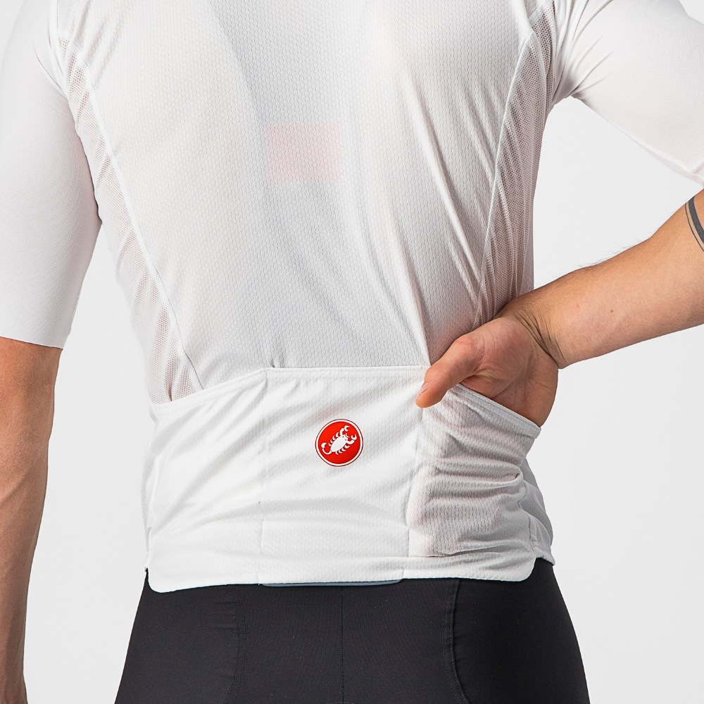Dyed ProSecco Micromesh main body fabric to keep you dry Mesh side panels for breathability Velocity Rev2 fabric on sleeves with close-to-body fit and raw-cut endings Covered YKK® Vislon® zipper Drop tail with 3 rear pockets Reflective piping at back Sublimated overprint graphic