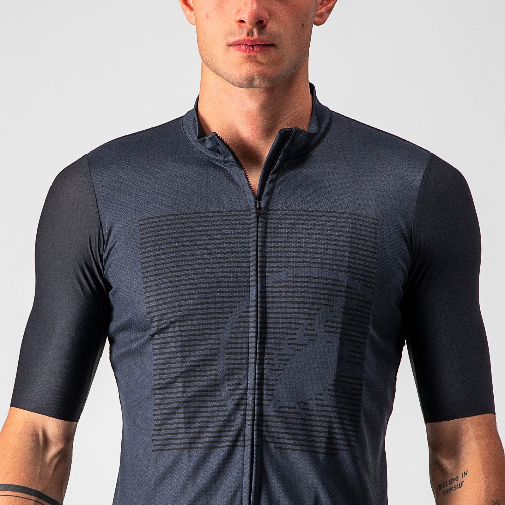 Dyed ProSecco Micromesh main body fabric to keep you dry Mesh side panels for breathability Velocity Rev2 fabric on sleeves with close-to-body fit and raw-cut endings Covered YKK® Vislon® zipper Drop tail with 3 rear pockets Reflective piping at back Sublimated overprint graphic