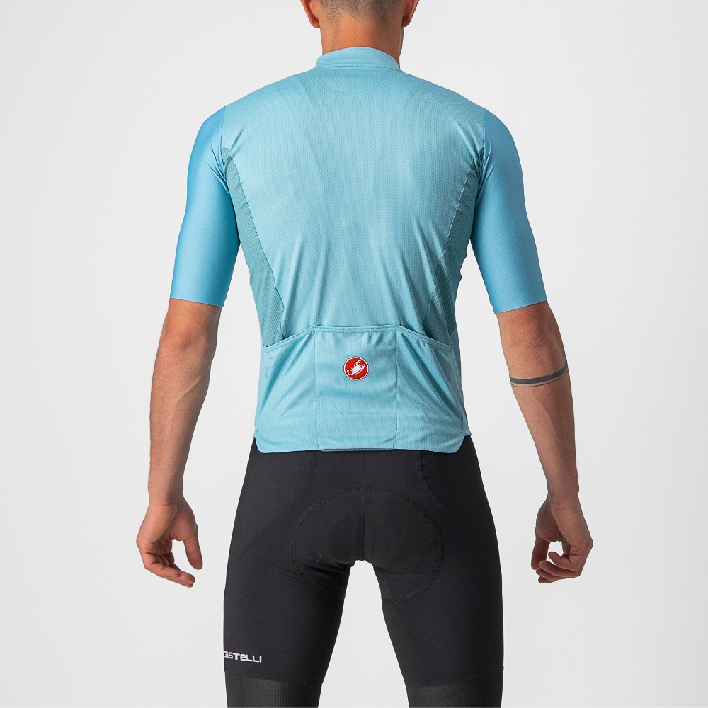 Dyed ProSecco Micromesh main body fabric to keep you dry Mesh side panels for breathability Velocity Rev2 fabric on sleeves with close-to-body fit and raw-cut endings Covered YKK® Vislon® zipper Drop tail with 3 rear pockets Reflective piping at back Sublimated overprint graphic