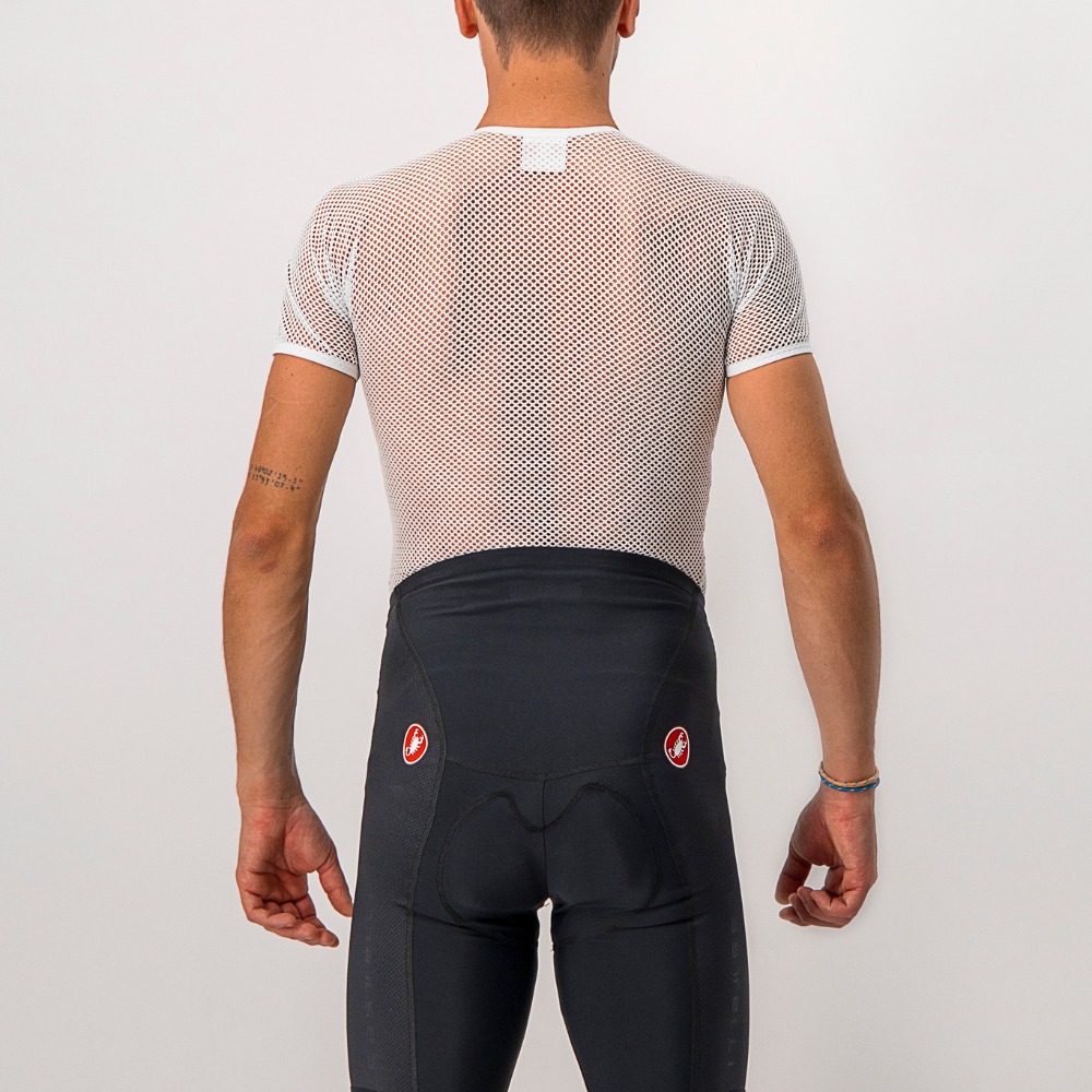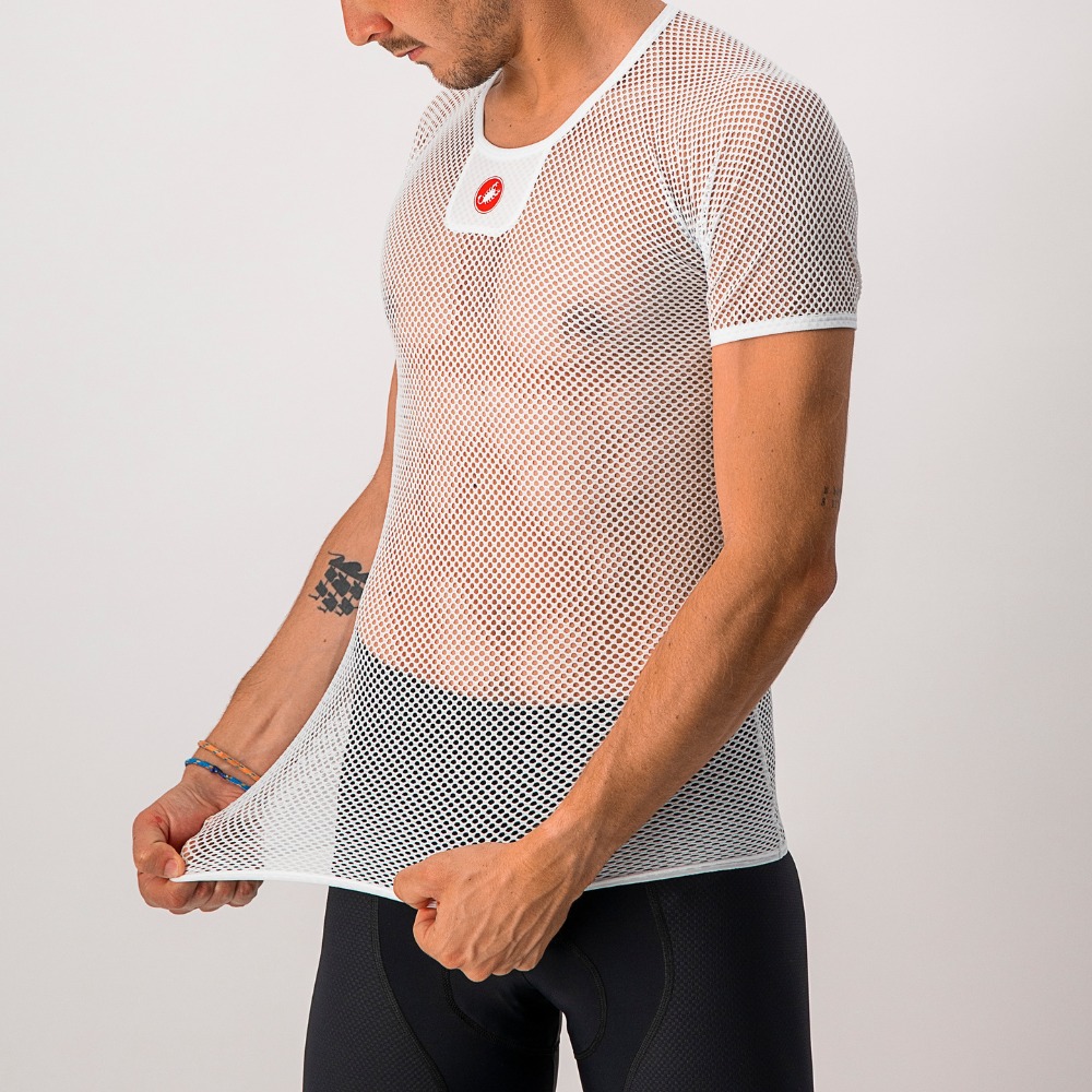 Our lightest and airiest base layer wicks moisture away from your skin, while the open mesh helps hold the jersey up and away from the skin. It's good for warm conditions, and some riders even like it on a hot day, as it allows airflow between the jersey and skin.