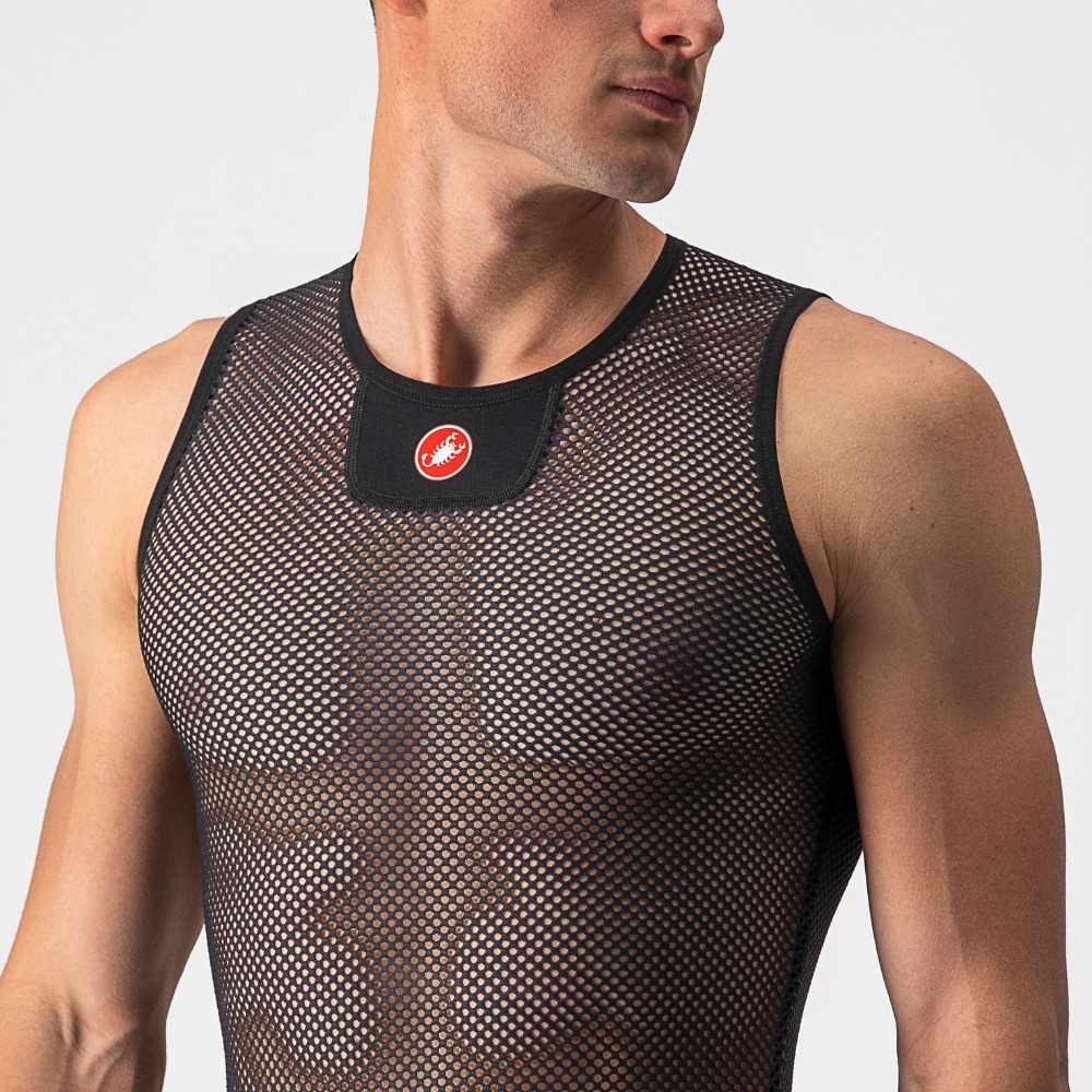 Our lightest and airiest base layer wicks moisture away from your skin, while the open mesh helps hold the jersey up and away from the skin. It's good for warm conditions, and some riders even like it on a hot day, as it allows airflow between the jersey and skin.