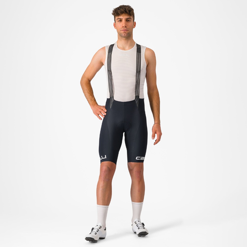 Minimalist bib straps allow maximum airflow, while a reinforced yoke keeps the straps flat over the shoulders