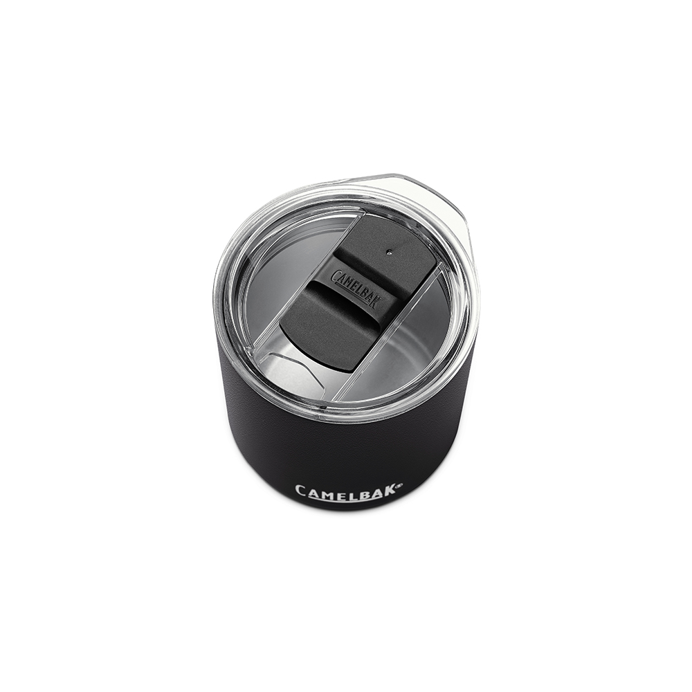 Cocktail sophisticated, outdoor durable. Double-wall insulated stainless steel keeps cocktails iced at ideal temperature and the full powder coat finish sweat-free. The tri-mode tumbler lid slides open for variated flow and is spill resistant when closed. A non-slip silicone pad on the base grips surfaces to avoid scratches and spills.