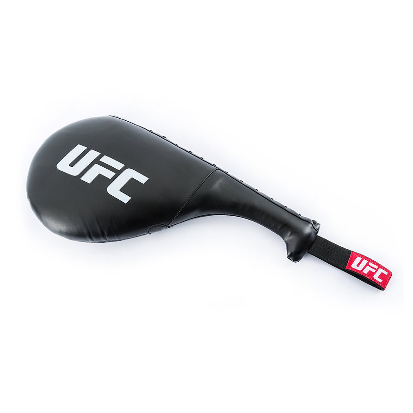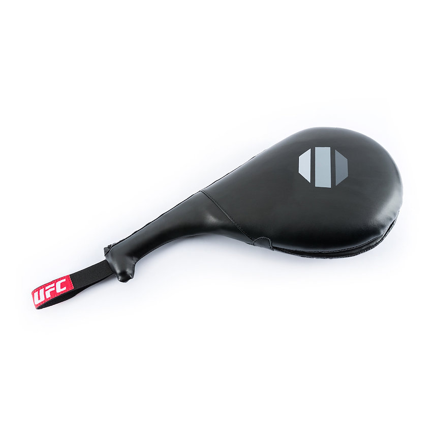 UFC Pro Paddle Targets were inspired by traditional martial arts training tools and are used to train long kicking and spinning techniques. A training partner is able to extend their arm while holding the pad out for safety. Features include lightweight layers of EVA and open-cell foam for protection, elastic wrist loops, and durable engineered leather construction.