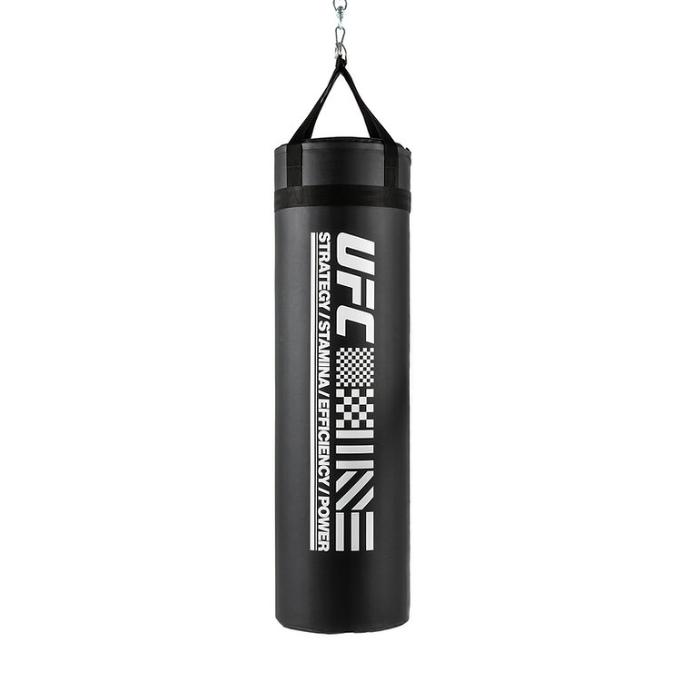 The UFC Power Heavy Bag is a durable, nylon-and-PVC shell designed for custom-filling up to 100 lbs. It features reinforced stitching, a heavy-duty zipper, and a quiet, secure nylon strap hanging system. Engineered for MMA, boxing, and Muay Thai, it is designed for heavy, daily training.