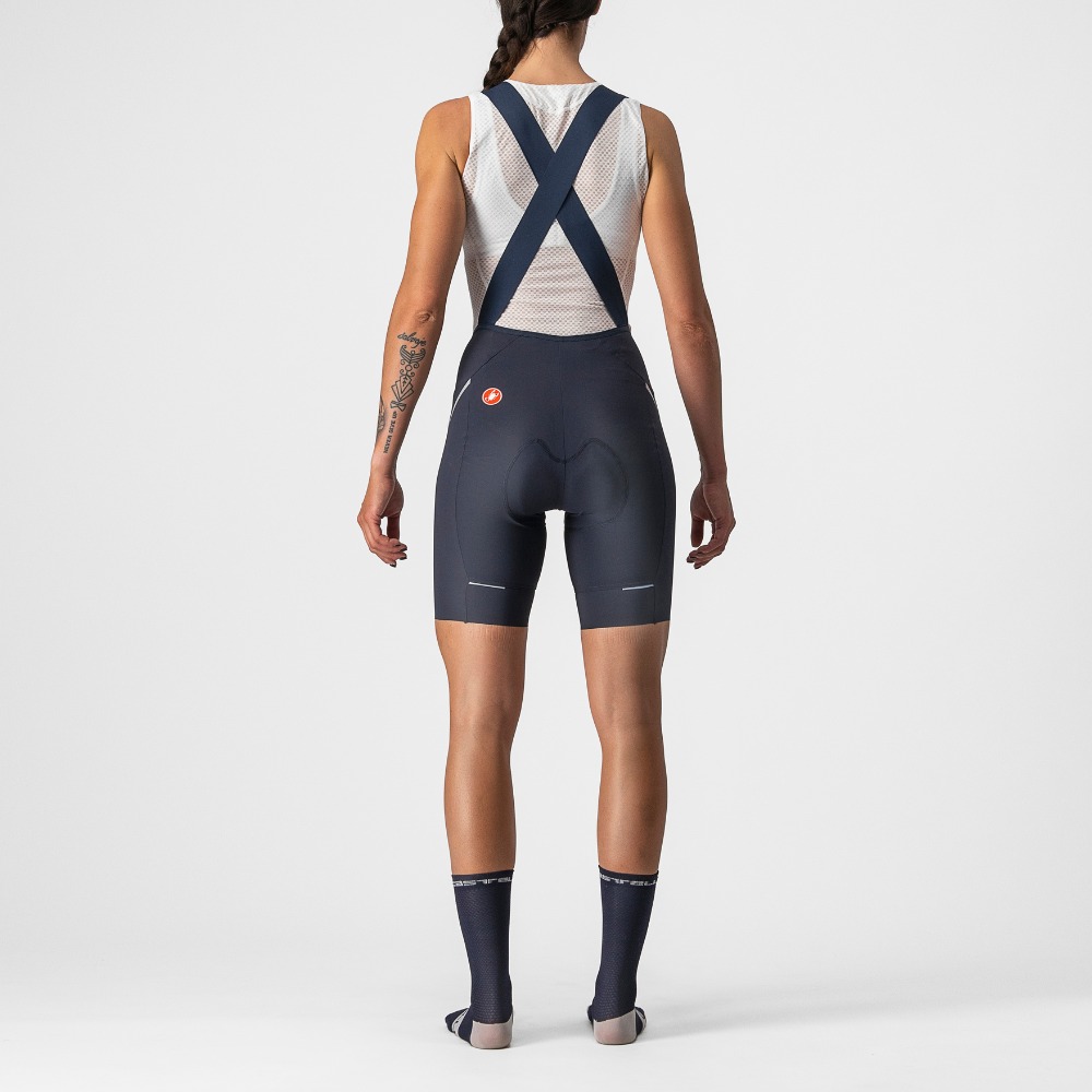 Premium fabrics, a flattering cut, drop-tail bib straps, and our everyday-comfort KISS Air2 Donna seat pad make this short right for everything but the longest rides.